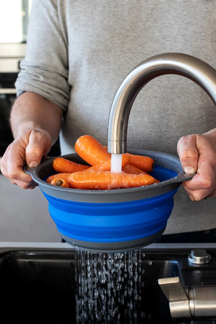 Met het Colourworks vergiet in het blauw kan jij gemakkelijk de groentes wassen voor het koken. Klap het vergiet uit en leg dan de groentes in het vergiet. Er zitten 2 handgrepen aan het vergiet om het vast te houden. Het vergiet is gemaakt van duurzaam nylon en daardoor is het vergiet stevig. De diameter van het vergiet is 24 centimeter. Ook kan je pasta afgieten met dit vergiet, want het vergiet is hittebestendig tot 210 graden. Niet alleen kan je dit vergiet inklappen, maar het vergiet is ook nog eens vaatwasserbestendig.