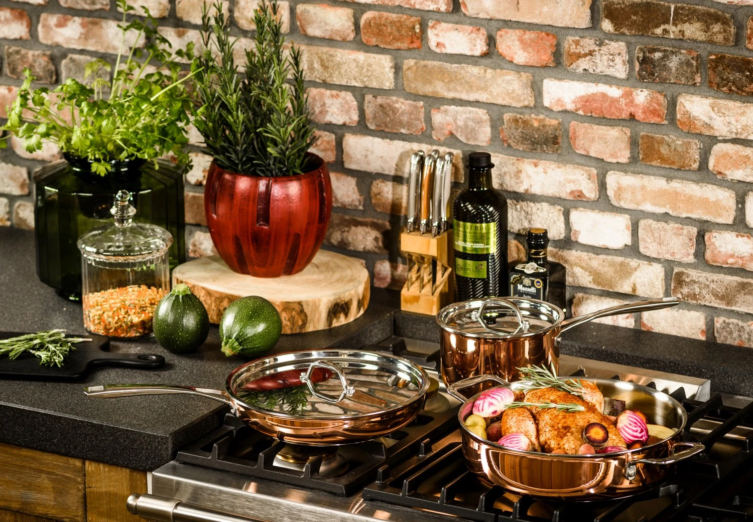 DUCQ pannen zijn niet alleen fraai in design maar ook van uitstekende kwaliteit. De pannen zijn opgebouwd uit 3 lagen: koper aan de buitenzijde, roestvrijstaal (RVS) aan de binnenzijde en een aluminium tussenlaag. Dit resulteert in een pan met voelbare kwaliteit (wanddikte 2,5 mm) en met een uitstekende warmteverdeling die gewaardeerd wordt door iedereen met een passie voor koken.