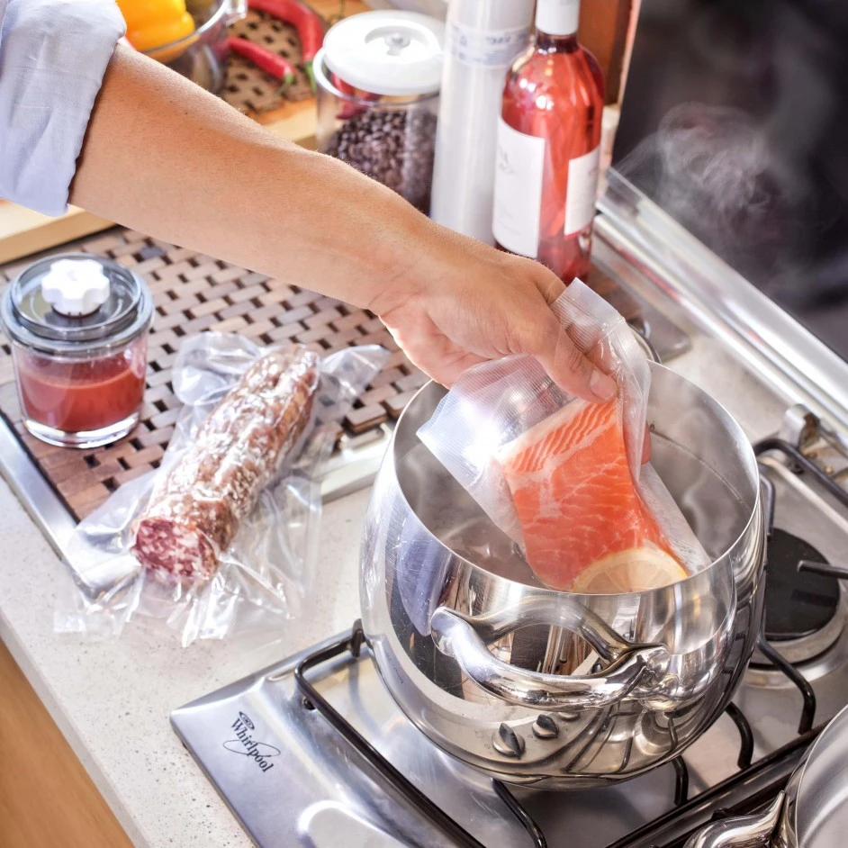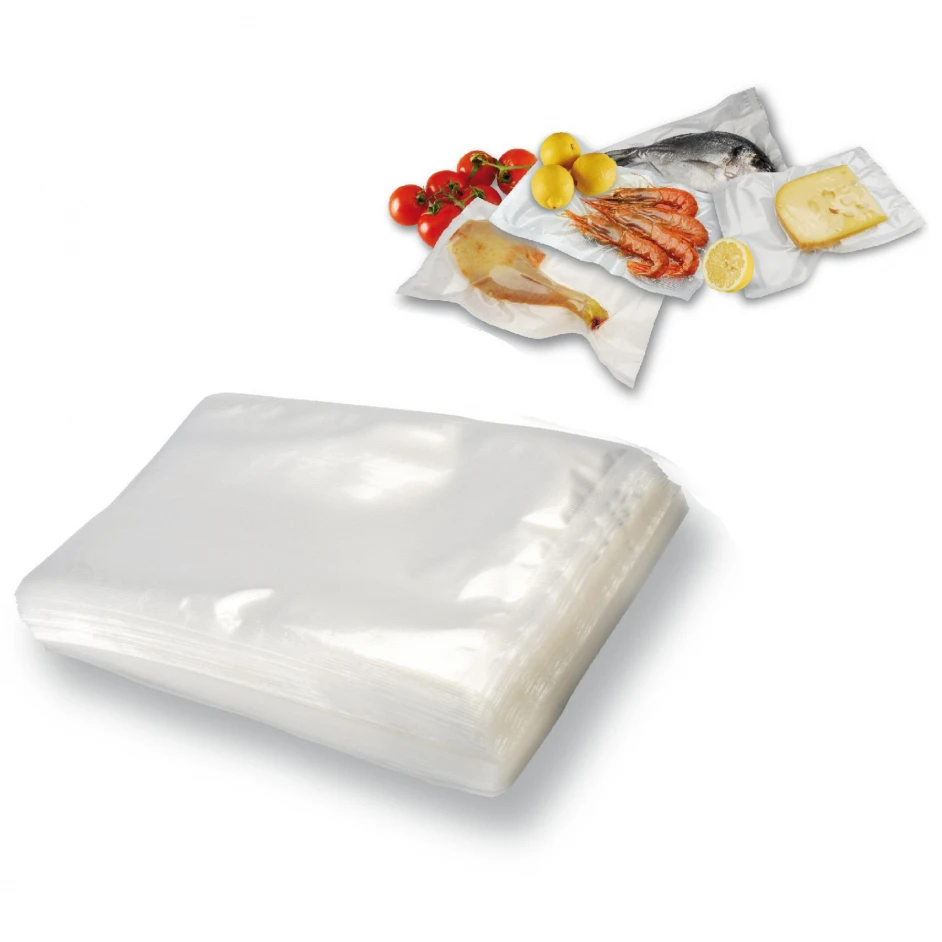 Garandeer dat er geen lucht of vocht meer bij je voedsel kan komen door te vacumeren met deze vacumeerzakken van Espressions. Door te vacumeren kan je voedsel tot wel vijf keer langer bewaren en de smaken blijven behouden. Met de dikte van 240 micron zijn deze zakken van hoge kwaliteit en ze zijn BPA vrij. De formaten van deze zakken zijn 20 bij 30 centimeter en het zijn er 100 stuks. Ook geschikt voor sous vide koken! Let op: het sous vide koken is veilig en getest voor 100? voor 1 uur, 90? voor 8 uur, 70? voor 72 uur.