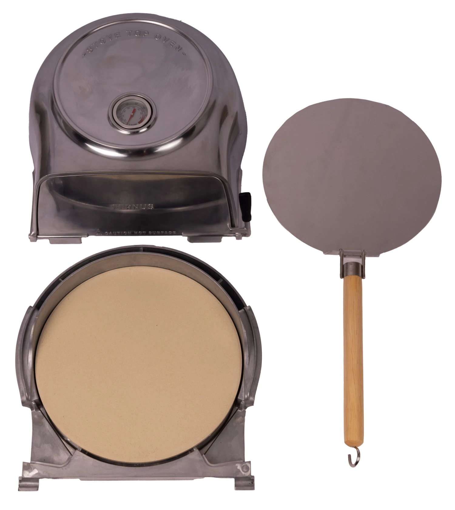 De heerlijkste pizza’s maak je nu thuis met deze Cookinglife Fernus & Friends pizza oven! Het compacte oventje dient geplaatst te worden op je gasfornuis, waarna hij een temperatuur van 350º Celsius bereikt. De perfecte temperatuur voor het bakken van pizza’s en andere deeg gerechten. Binnen 4 minuten heb jij de allerlekkerste pizza in handen, zoals je ze kent uit Italië! Een groot voordeel is dat deze pizza oven geschikt is voor zowel binnen en buiten!