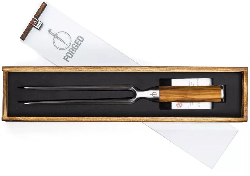Bij het ontwerpen van de Forged Olive serie was het samenvoegen van sprekende kleuren en materialen het uitgangspunt. De combinatie van het gehamerde lemmet, de strak afgewerkte krop en het natuurlijke olijfhouten heft, maakt dit tot een prachtige serie. Een regelrechte blikvanger.