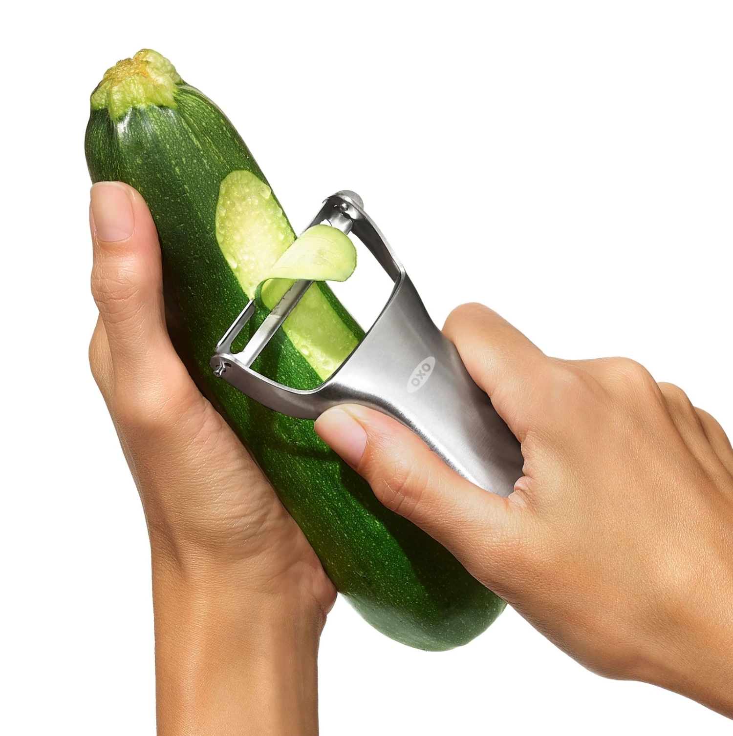 Met deze dunschiller van OXO Good Grips schil je zelfs de allerhardste fruit- en groentesoorten met gemak. Hij verwijdert alleen de schil en niet het fruit eronder. De greep is gemaakt van roestvrijstaal en bevat een antisliplaag zodat je veilig kan blijven schillen. Ook is de dunschiller voor zowel links- als rechtshandigen makkelijk te gebruiken en bevat hij een appeloog verwijderaar. Na gebruik mag de dunschiller gewoon in de vaatwasser.