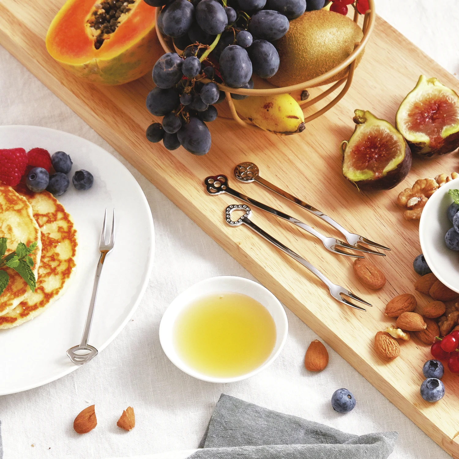 Dit kleurrijke, klassieke en opvallende bestek van Sambonet heeft Moorse invloeden. Al het Party Items bestek heeft aan het einde van het handvat een uniek figuurtje. Binnen de collectie zijn er drie verschillende ‘collecties’. De Party Animal, Party Portafortuna of Party Fashion hebben alle drie andere figuurtjes, mix de drie verschillende collecties of ga juist voor één van de collecties om meer eenheid te creëren. Het bestek komt in de bekende Sambonet kleuren en zijn kras- en vaatwasserbestendig dankzij de PVD-coating.