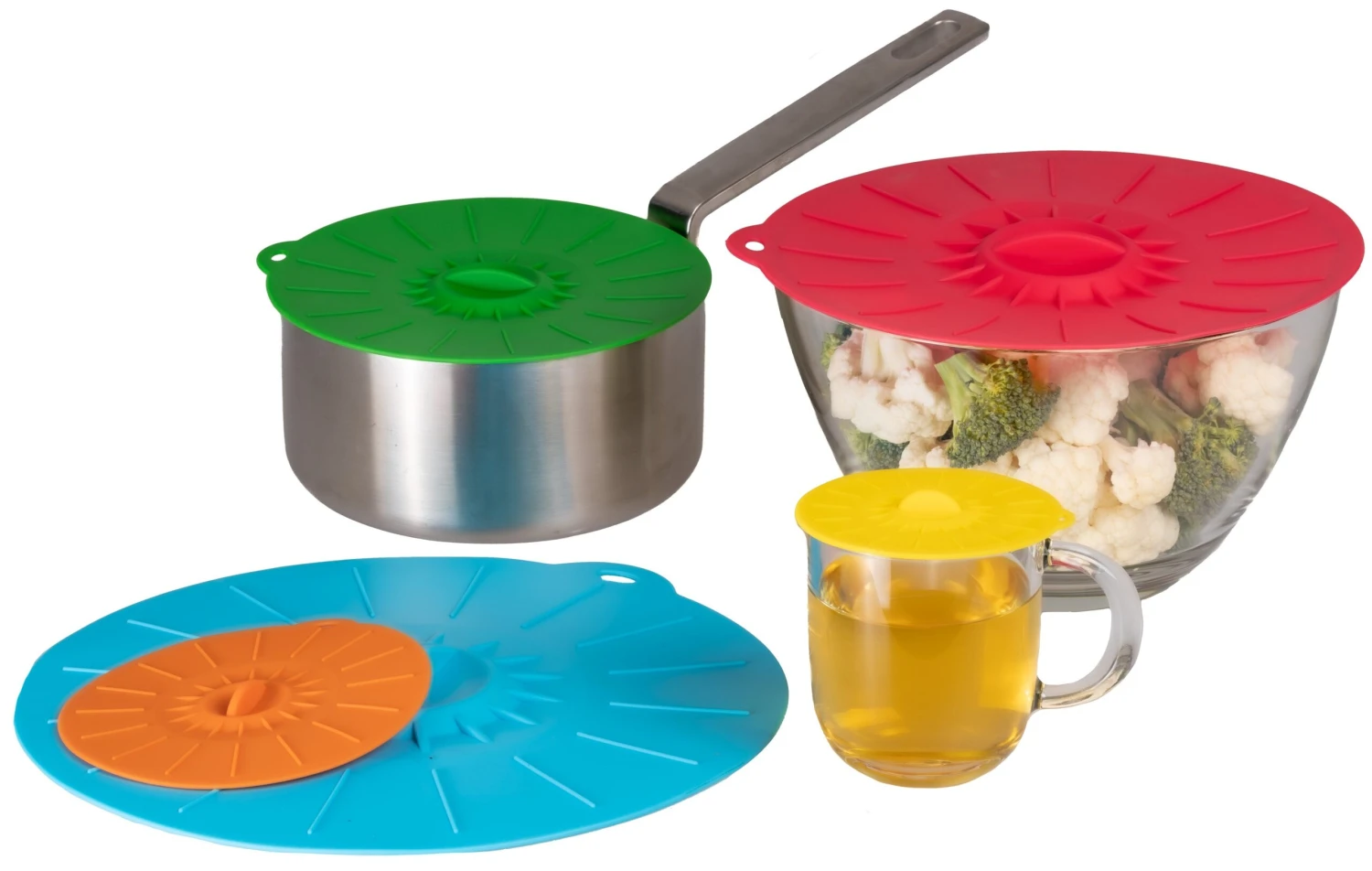 Met deze handige Cookinglife Siliconen Vershouddeksels Vacuüm – 5 Stuks is het gebruiken van plastic- of aluminiumfolie verleden tijd! Deze vershouddeksels sluiten namelijk vacuüm op gladde oppervlakten en zorgt ervoor dat jij je eten langer kan bewaren, zelfs op hout. De deksels zijn gemaakt van siliconen en BPA-vrij. Ook zijn ze hittebestendig van 230 tot -40 graden en na gebruik kunnen ze eenvoudig worden gereinigd in de vaatwasser.