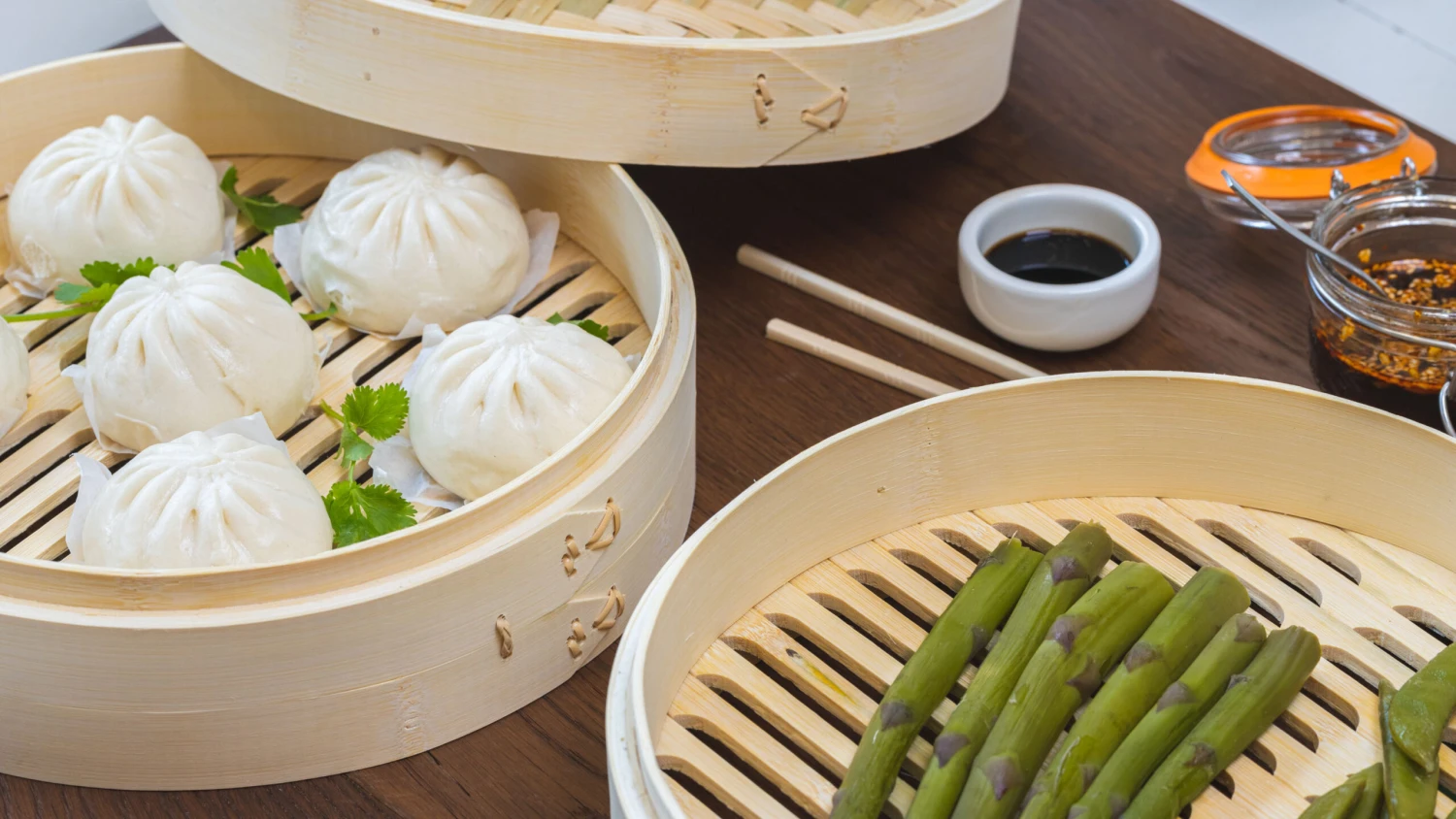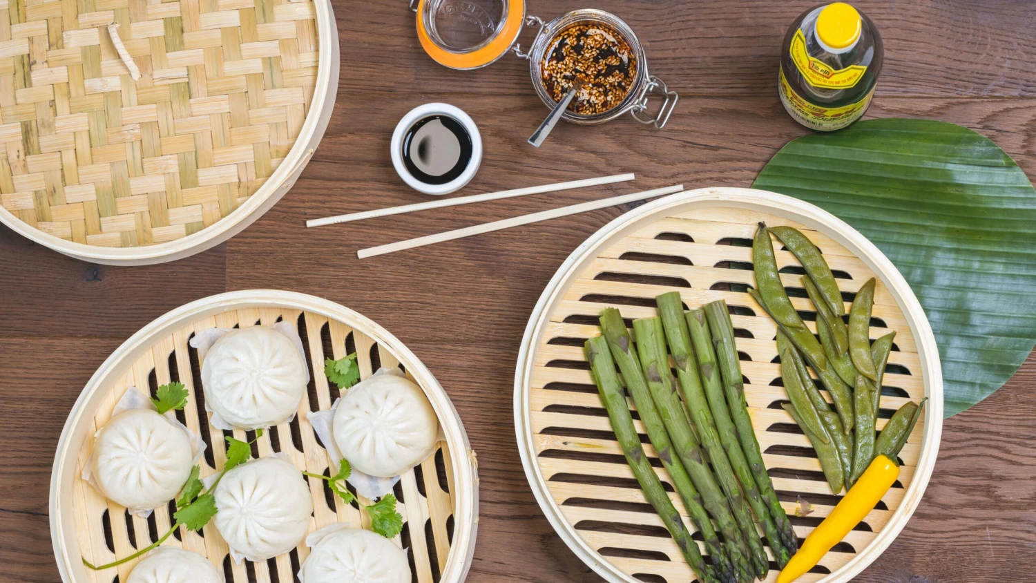 - Breng ruim water in een pan aan de kook, zorg dat de bodem van het mandje het water niet raakt. Leg eventueel bananenblad of bakpapier in het mandje en leg je product hier boven op.