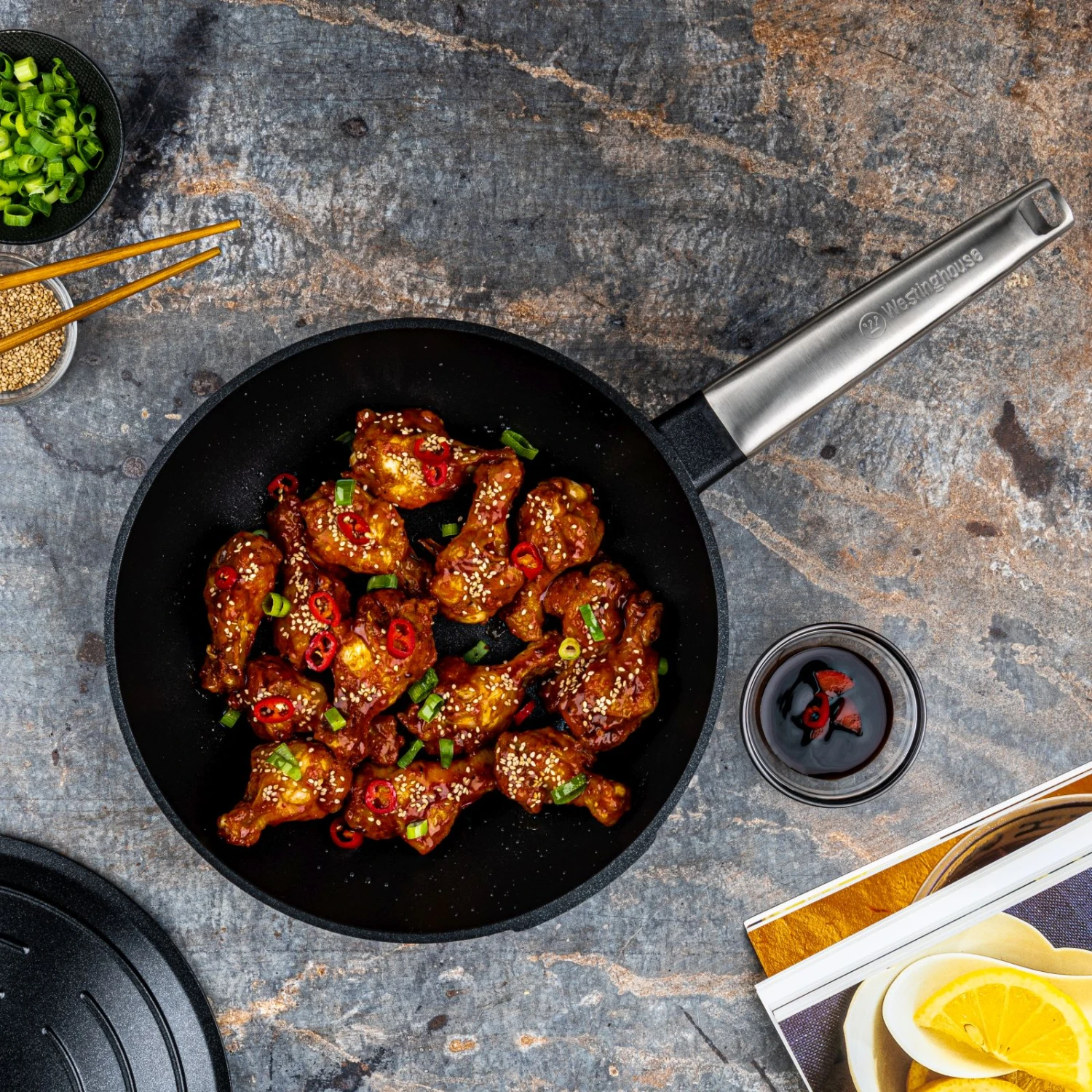 Koken en bakken moet niet alleen leuk en smakelijk zijn, het moet ook veilig gebeuren. De pannen van Westinghouse zijn van hoogwaardige kwaliteit. Deze pannen van de Westinghouse Performance collectie zijn lichtgewicht, hebben een uitstekende warmtegeleiding, bevatten een antiaanbaklaag die PFOA- en PTFE-vrij is en zijn makkelijk schoon te maken in de vaatwasser.