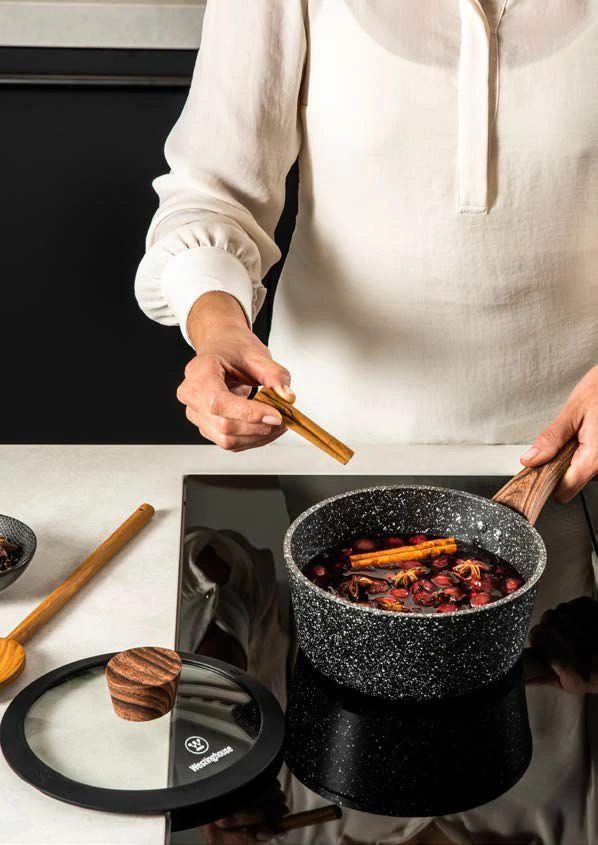 De pannen uit de Westinghouse Marble Collection zijn perfect voor in ieder huishouden! De pannen zijn voorzien van een innovatieve anti-aanbaklaag die 100% gegarandeerd vrij is van PFOA en andere schadelijke stoffen. Ze hebben een snelle en gelijkmatige warmteverdeling. Ook zijn de pannen gemakkelijk te reinigen in de vaatwasser en geschikt voor alle soorten warmtebronnen. Bij deze collectie heb je de keuze uit pannen met een zwarte of houten look handvat.
