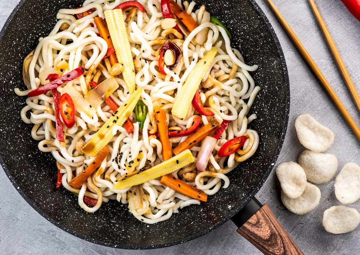Maak een heerlijk wokgerecht klaar met deze Westinghouse Wokpan Marble ø 30 cm Wood! De pan is gemaakt van gesmeed aluminium en voorzien van een 3-laagse niet klevende marmeren coating. Het handvat heeft een houten look en deze wordt niet heet tijdens het koken. Daarnaast is de wokpan geschikt voor alle soorten warmtebronnen. Na het gebruiken van de Westinghouse Wokpan Marble ø 30 cm Wood kan deze eenvoudig worden gereinigd in de vaatwasser.
