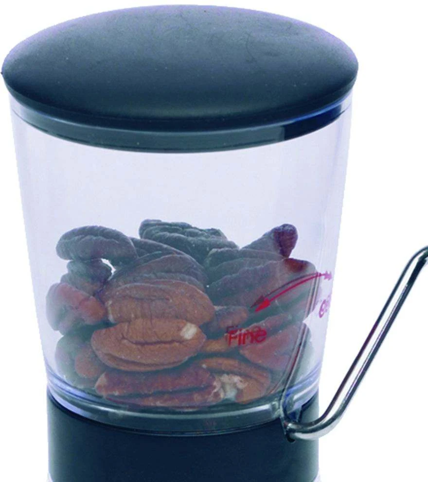 De ergonomische slinger zorgt voor extra gebruiksgemak en dankzij de antislipbasis heb je een stevige grip tijdens het malen. Praktisch: het opvangbakje heeft een handige schaalverdeling (in milliliters) en biedt plaats aan ongeveer 275 ml noten. Bovendien kunnen aardnoten veilig bewaard worden dankzij de bodemsluiting.